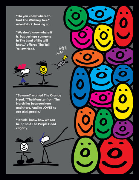 Our first book takes the main characters on a wild journey through the lands to find The Wishing Tree. Our friends encounter magnificent challenges along the way and unexpectedly get help from some really kind creatures. Stick, Big Feet, Stretch, Twiggles, and Wags have a fabulous adventure and learn some valuable lessons along the way. You'll find those in the book!